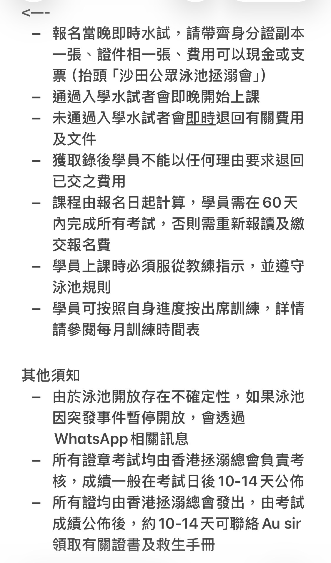 *(所有考核由中國香港拯溺總會負責,課程完成時間視乎考期及行政因素)