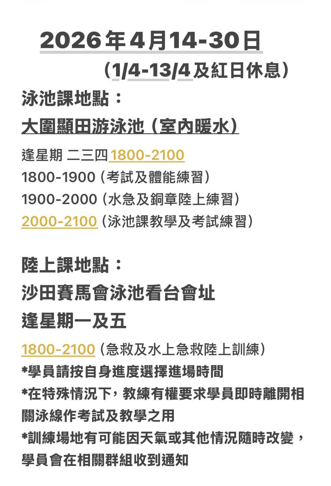 本會全年均設有救生訓練:(假期除外)